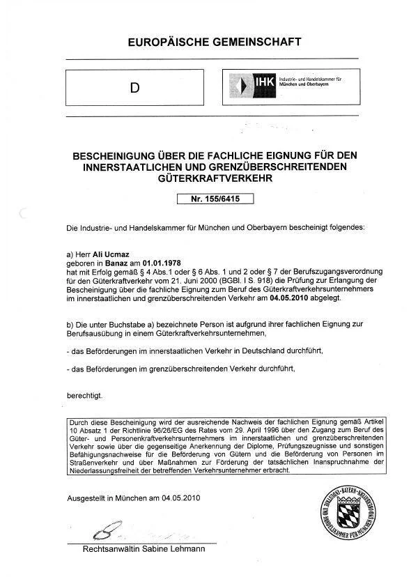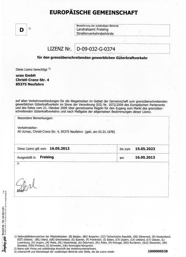 DIE GENEHMIGUNGEN FÜR TRANSPORTE